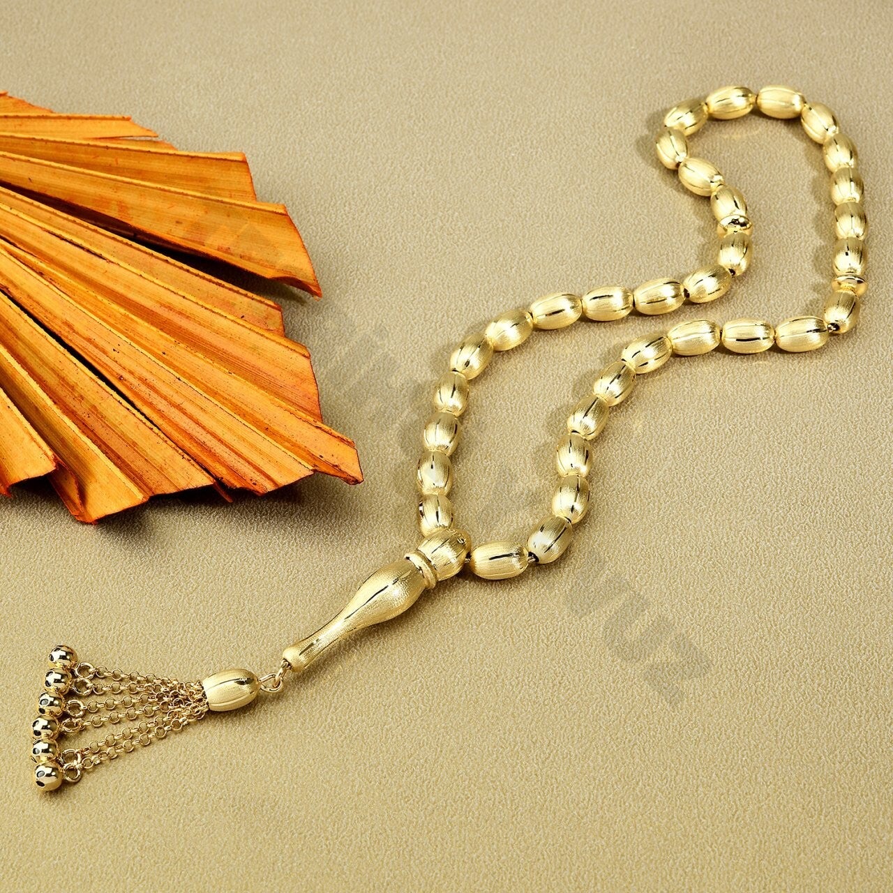 Kalligrafisch 14 Karaat Gouden GebedssnoerHet 14 karaat gouden gebedssnoer met kalligrafie is een elegant handgemaakt gebedsinstrument. Dit gebedssnoer, gemaakt van 14 karaat goud, is uniek door de kalligrafische techniek. Dit gouden gebedssnoer zal een speciale plek innemen in uw gebeden en verzamelingen, en steekt eruit door zijn esthetiek en duurzaamheid.
